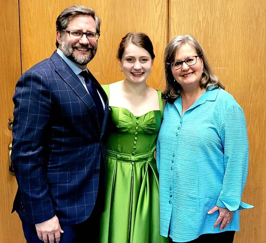 Jon Peede, former chairman of the National Endowment for the Arts, and the Rev. Nancy Hollomon-Peede pose with their daughter, Somerset Peede, center. The family is moving to Ohio in June, where he will assume the presidency of Ashland University and Ashland Theological Seminary.